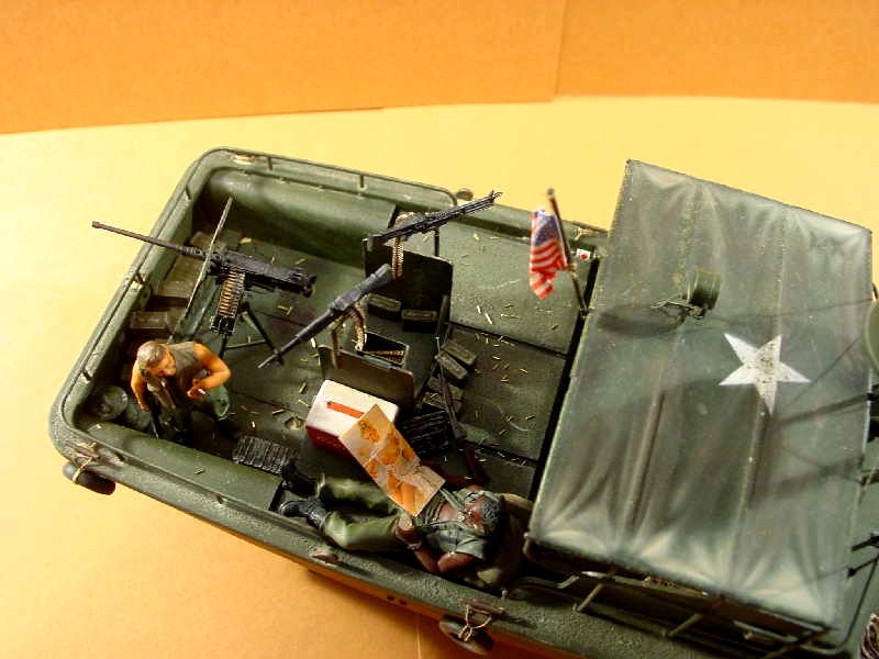 Hier sehen wir das Tamiya PBR, Patrol Boat River, mit Verlinden .50 cal MG und einer Besatzung von Verlinden sowie diversen Zubehörteilen. Der Anti-Rutsch-Belag entstand aus Mr. Surfacer 1000 und Cast-a-Coat Pulver.