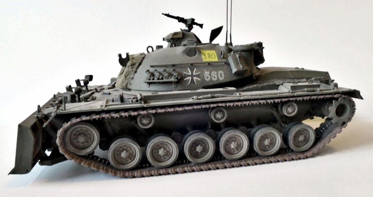 Die Bilder zeigen einen Pionierpanzer M48A2CG, wie er bei der Bundeswehr bis Ende der 80er Jahre im Einsatz war. Das dargestellte Fahrzeuge stammt von der PzPiKp 350 (Hammelburg) und war so während Reforger 88 "Certain Challenge" auf Seite der Übungstruppe "Gold" im Einsatz.