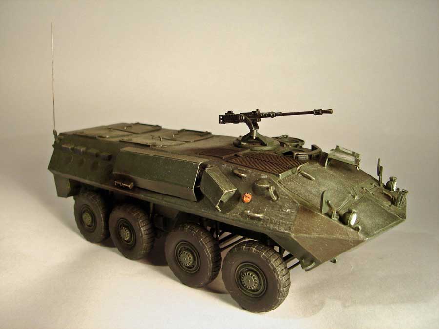 Dies ist das Italeri Modell LAV-25 an dem das Oberdeck, die Windschutzscheibe, Heckwanne, Winkelspiegel, Auspuffschutzgitter und Staukisten geändert wurden. Einige Teile habe ich aus anderen Bausätzen entnommen, wie Spiegel, Werkzeuge, Scheinwerfer, MG, usw.