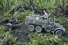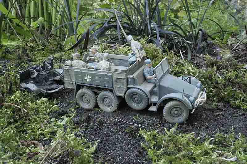 Das Modell ist die Krupp Protze, Leicht, und stammt von Tamiya, Artikelnummer 35104. Für die Bemalung wurden Enamelfarben von Humbrol und Revell verwendet.