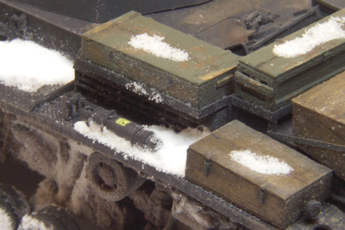 Ich habe Lifecolor Panzergrau Set verwendet. Schnee ist aus der AK Diorama-Serie; Schneeschaum bedeckt mit Schneemikroballons von AK. Ich habe auch mit Landscape in Detail Schnee experimentiert, aber es war nicht so gut, ich musste es mit Mikroballons bedecken.