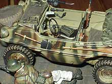 Erbauer: Stefan Böker Es zeigt den VW - Schwimmwagen Typ 166 von Tamiya, ein grundsolider Bausatz. Ergänzt wurde er durch einen Zusatzrüstsatz mit Resin und Ätzteilen von Verlinden. Die Figuren stammen von Dragon-Korsun Pocket 1944 in der "2. Generation."