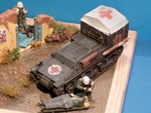 Erbauer: Emanuel Vandenryt Es handelt sich um den RPM Bausatz Das Modell wurde „out of box“ gebaut, einzig die Abdeckplane wurde aus „Tempo“ dazu gebaut. Die Szene zeigt den Sanitätspanzer inmitten einer Verwundetenversorgung 1942/42 an der Ostfront.