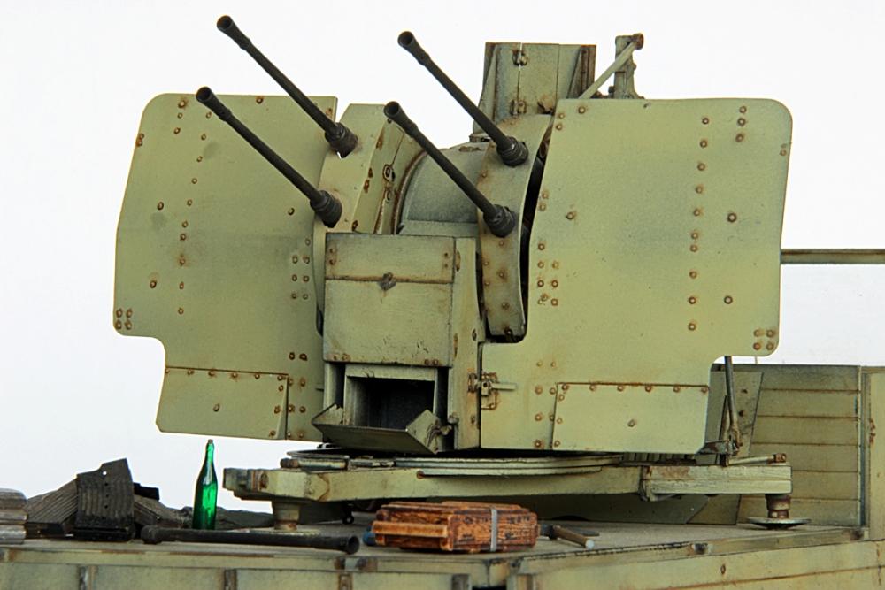 Erbauer: Klaus Delventhal Das Modell basiert auf dem sehr guten Bausatz von Dragon 6525 in 1/35. Obwohl der Bausatz sehr detailliert ist und sich gut bauen lässt, habe ich ihn noch etwas mit dem sehr umfangreichen Zurüstsatz von Griffon model S-BPL35003 ergänzt und einige Teile aus der Restekiste für die Ausrüstungsgegenstände der Mannschaft verwendet. Auf Tarnmaterial habe ich bei diesem Modell verzichtet. Ich habe viele Referenzfotos gefunden, auf denen kein Tarnmuster am Fahrzeug zu erkennen ist. Das Fahrzeug war gegen Ende des Krieges einfarbig in dunkelgelb lackiert. Für die Bemalung habe ich als Basisfarben Life Color Farben verwendet. Mit dunkleren Ölfarben erfolgte dann das Washing des gesamten Fahrzeuges. Anschließend wurde mit verschiedenen Ölfarben ganz leicht trockengebürstet und kleinere Verschleißspuren aufgemalt. Die Detailbemalung und das Finish erfolgten auch mit Ölfarben. Zum Abschluss wurden Schmutz und Staub mit MIG Pigmenten erzeugt.