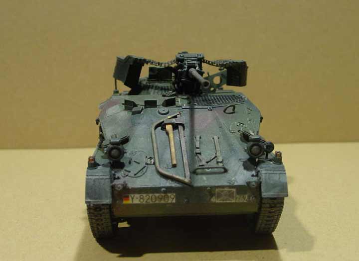Erbauer: Volker Kuhn Wiesel von AFV-Club, detailliert mit Eduard PE-Set, lackiert mit Tamiya Acryl-Farben, Wash mit Revell Nr. 89 (Sand)