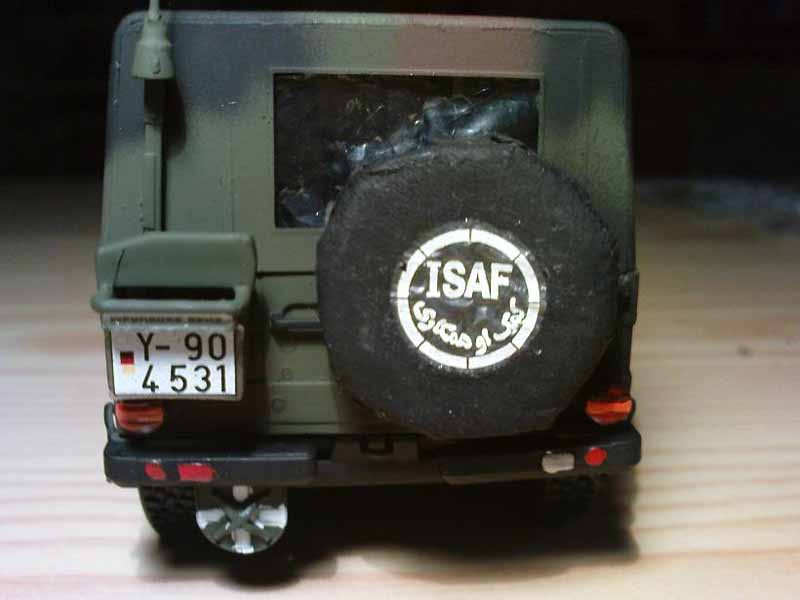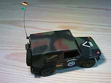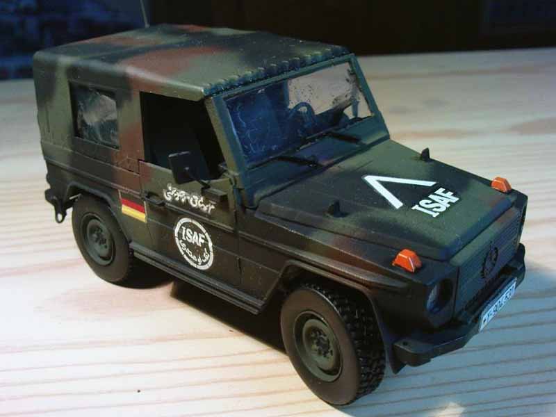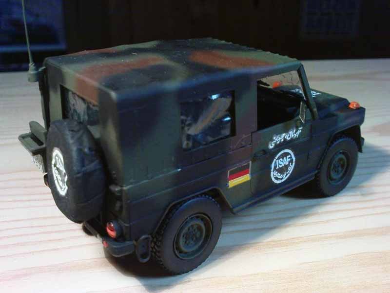 Erbauer: Christian Fanghänel Lkw gl leicht Wolf von Revell. Das Modell entspricht im großen und ganzen dem Original aus der Box, außer die Seitenscheiben der Plane hinten, welche aus Kunststoff-Folie gefertigt sind und die Ersatzradabdeckung, welche ich aus einem Papiertaschentuch geformt habe.