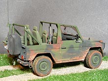 Erbauer: Jürgen Schulz Zum Wolf von Revell ist eigentlich alles gesagt, nur noch nicht von mir. Ich werde hier also nicht über die gute Passgenauigkeit berichten, sondern nur das Modell präsentieren. Gebaut wurde der Wolf mit einigen Extras: - Das Funkgerät wurde durch ein SEM 25 ersetzt - Ein Handapparat wurde angeschlossen - Die Sitze sind aus Resin und sehen etwas besser aus, als die aus dem Bausatz - Das gleiche gilt für die Räder - Die Waffenhalterungen wurden mit zwei G3 bestückt - Die taktischen Zeichen sind vom Druckeronkel, die PzPiKp 390 war 1993/1994 meine letzte militärische Heimat nach dreizehn Dienstjahren.