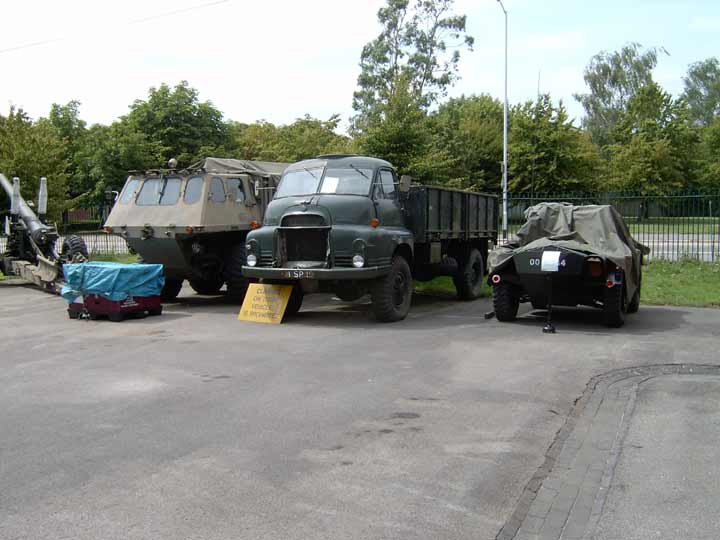 Fahrzeuge im Außenbereich : v.l.n.r Stalwart, Bedford, Ferret |