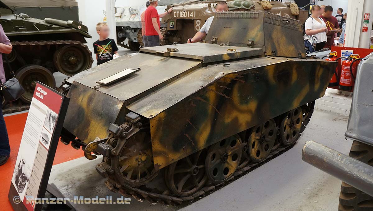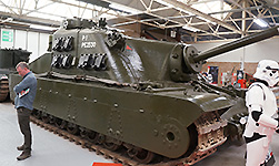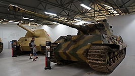 Überhaupt kann man schon behaupten, dass hier in der Gesamtheit die beste Panzersammlung mit über 300 Fahrzeugen gezeigt wird, denn neben dem gesamten Sammelsurium der englischen Panzerfahrzeuge vom 1.Weltkrieg bis zum heutigen Challenger 2 gibt es auch Fahrzeuge anderer Nationen, insbesondere einige exquisite Stücke der Wehrmacht zu sehen, wie einen Sd.Kfz.304 Springer, Panzerbefehlswagen I, Panzer II Ausf.F, Panzer II Ausf.L, Panzer III Ausf.N, Panzer IV Ausf.D L/48, Sd.Kfz.234/3, Jagdpanzer 38, Panther Ausf.G, Jagdpanther, Tiger I, Tiger II, Jagdtiger und aktuell 2018 als Leihgabe aus den USA den Panzerjäger Elefant. Letzterer wird derzeit in einer besonderen Tigerhalle mit den anderen Tiger Panzern Tiger I, Tiger II mit "Porsche-Turm", Tiger II mit Serienturm und dem Jagdtiger gezeigt, dazu eine virtuelle Darstellung eines Sturmtigers. Eine sehr interessante und schön gemachte Halle - derzeit unbekannt wie lange diese so zusammen ausgestellt werden, es ist aber auf jeden Fall befristet.