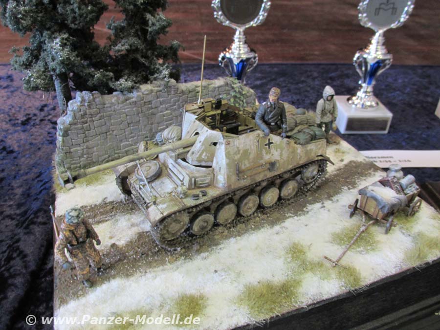 Im Lauf des Vormittags begann dann der Modellbauwettbewerb. Zur Teilnahme waren nicht nur IMM Mitglieder zugelassen sondern auch für die Gastaussteller war eine Teilnahme möglich. Als Wettbewerbskategorien standen Einzelfahrzeuge, Figuren und Dioramen in den verschiedenen Maßstäben zur Verfügung. Auch eine Sonderkategorie zum Thema 1. Weltkrieg kam in die Wertung. Insgesamt empfand ich die Anzahl der Teilnehmer am Wettbewerb jedoch etwas dürftig. So gab es in einer Kategorie nur 4 Teilnehmer… Bewertet wurden die teilnehmenden Modelle anhand vorgefertigter Bewertungsbögen. Hier konnte man einfach seine drei persönlichen Favoriten der jeweiligen Kategorie eintragen. Die Einträge wurden dann zur Auswertung zusammengezählt. Die höchste Stimmenzahl landete auf Platz 1. Hier trägt das persönliche Interessengebiet und der Geschmack der bewertenden Person sehr dazu bei einem Modell den Vorzug gegenüber einem anderen zu geben. Im vergangenen Jahr erfolgte die Bewertung anhand eines Bewertungsbogens mit ganz klar definierten Vorgaben und Kriterien für die Begutachtung. Dadurch kam es viel stärker auf das Geschick und die Fähigkeiten des Modellbauers sowie die Qualität der Modelle an. Auch wenn diese Bewertungsform einen erheblichen Mehraufwand bedeutet sollte man vielleicht darüber nachdenken in den kommenden Jahren die Auswertung wieder auf diese Art durchzuführen.