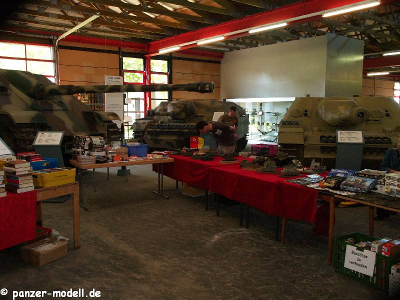 Traditionell am Pfingstwochenende fand auch dieses Jahr am 10./11. Mai die Ausstellung im Panzermuseum Munster statt. Dieses Mal wiederholte sich das Ergeinis zum 12. Male. Allerdings gab es dieses Jahr einige Änderungen, da das Panzermuseum um eine neue, sehr schöne und geräumige Halle erweitert worden war. Aufgrund diverser räumlichen Änderungen wurde unserem gemeinsamen Stand mit dem Team von rommelkiste.de ein neuer Platz zugewiesen. Als Hintergrund dienten uns ein Jagdpanther, Jagdpanzer IV und ein Hetzer. Wenn das mal kein schönes Ambiente ist.