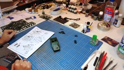 Thomas VW Pritsche und Jagdpanzer IV haben bereits eine Grundierung, der Dragon Panzer III steht auf den Laufrollen. |