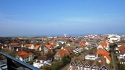 Blick über Wangerooge vom alten Leuchtturm bis hin zum Radarturm der Bundesmarine. Dort befindet sich auch die "Palette".