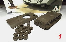 Der Leopard C2 Mexas von Takom mit der Art. Nr. 2003 ist der erste Plastikbausatz für dieses Fahrzeug. Bisher gab es nur relativ teure Resin- Umbausätze von verschiedenen Herstellern. Jetzt hat man auch für vergleichsweise kleines Geld eine Möglichkeit den das Modell zu bauen. Der Bausatz wartet mit sauber und scharfkantig gegossenen Plastikteilen, Photoätzteilen, beweglicher Drehstabfederung und einer beweglichen Einzelgliederkette auf. Das Decalsheet bietet Optionale Markierungen für vier verschiedene Fahrzeuge. Eine Figur zur Darstellung eines Talibankriegers liegt zusätzlich bei.