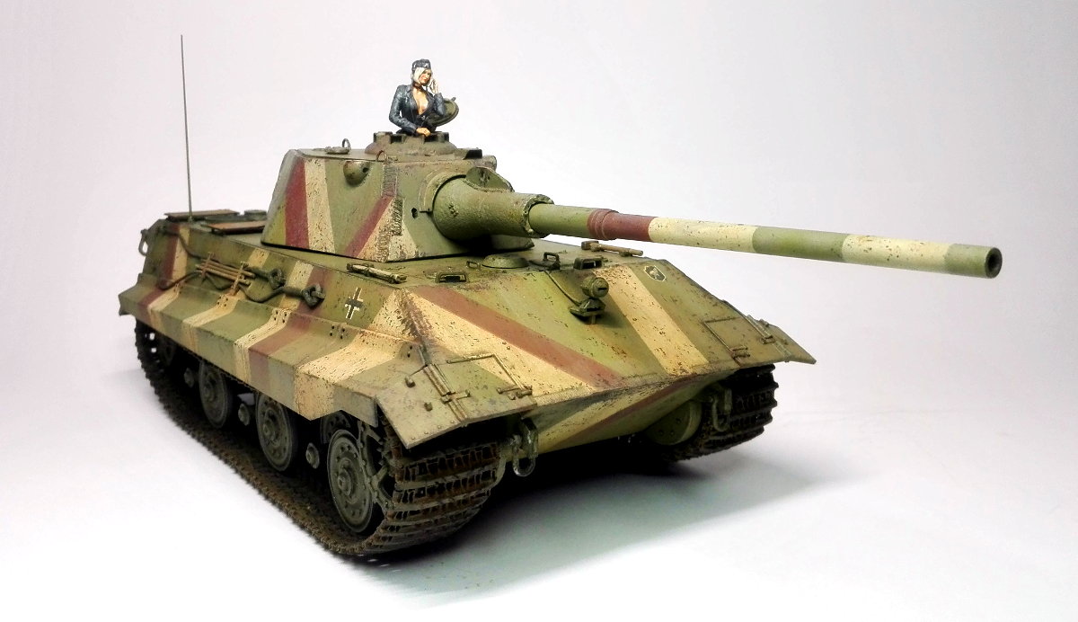 Das Layout der Oberwanne ist exakt wie beim E-75 mit dem späten Motordeck, wie es für späte Tiger II mit der mehrteiligen Motorluke vorgesehen war.