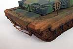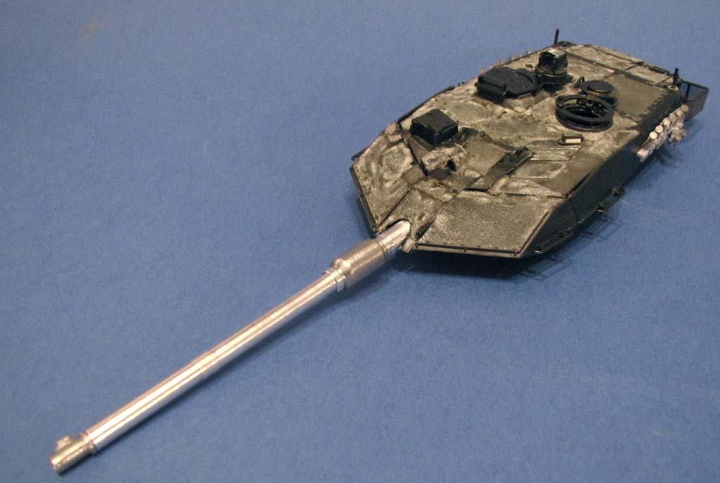 Auf dem Motordeck müsste man ein wenig umarrangieren, denn es zeigt noch immer das falsche Layout eines frühen Leopard 2 - dazu müsste der dritte Deckel vorn links verspachtelt und die Werkzeuge, die in Längsrichtung angebracht sind, quer anbringen. Wer den Turm nicht dreht, kann aber darauf verzichten, da man dann nichts davon sieht.