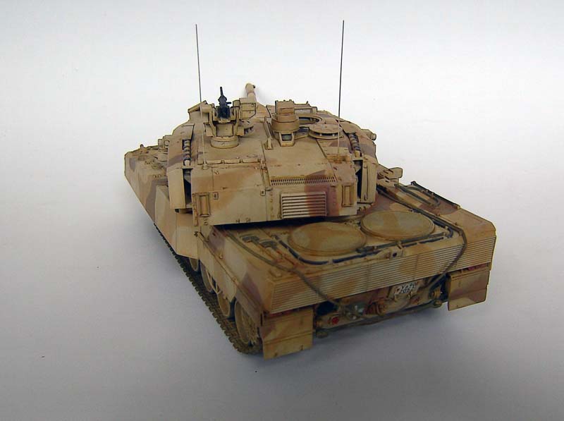 Für die Lackierung nahm ich die Referenzbilder aus dem Internet als Vorlage. Auf der Eurosatory 2010 wurde der Leopard 2A7+ von KMW in einem Wüstentarnstrich, bestehend aus einem hellen Sandgelb, einem hellbraunen und einem dunkelbraunen Farbton vorgestellt. Die Lackierungsvariante ist auch in der Bauanleitung von Y-Modelle als Bemalungsvorschlag vorhanden.