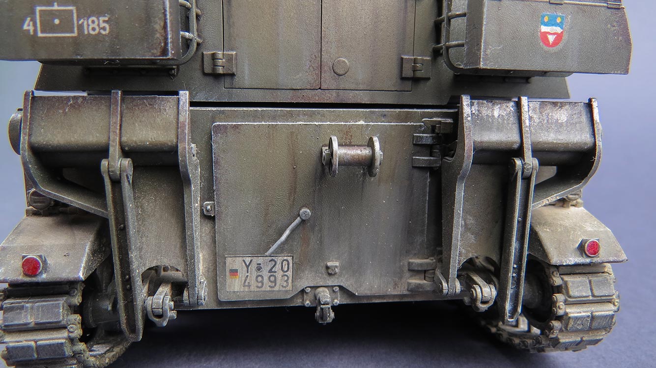 Ganz zum Abschluss tupfe ich helle Staubpigmente in den Laufwerksbereich und der Heckwanne, sowie den Kettenblechabschlüssen - dezent und nicht zu viel.