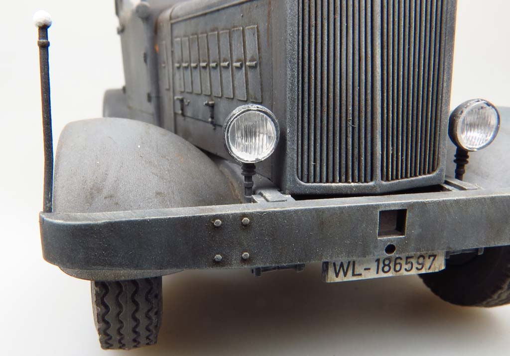 Denn nun liegt das Washing an - ich finde, dass gerade bei grauen Fahrzeugen ein deutliches Washing eine Menge für die Detailwirkung ausmacht. Ich habe daher hauptsächlich ein Pin-Wash mit Amig 1006 und 1008 duchgeführt, wobei ich die Flächen auch nochmal mit verdünntem wash abgestrichen habe um eine leichte Abdunkelung der Gesamtfarbe zu erreichen.