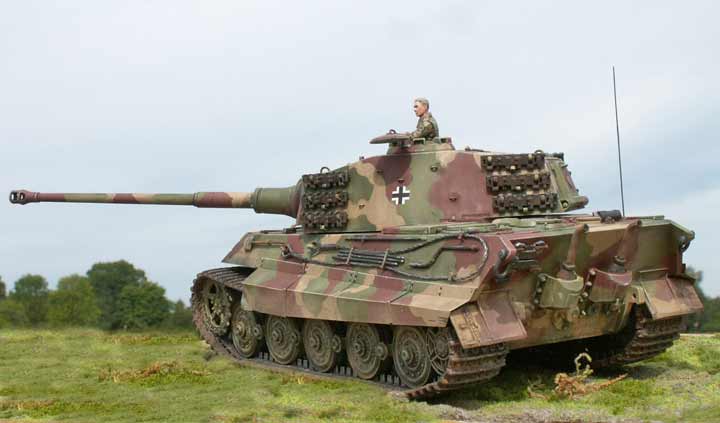 Nach den Tiger II Bausätzen, die Dragon schon herausgebracht hat, kommt nun ein weiterer Bausatz, der eine späte Produktionsversion mit dem neuen Laufwerk mit 18 Zähnen der Treibräder beinhaltet. Auch ansonsten wurde der Bausatz weiter verbessert und mit Zubehör versehen.