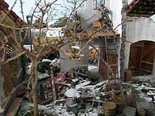 Die meiste Zeit habe ich dabei im Garten gearbeitet, nur im Winter die kleineren Teile in der Wohnung geklebt, bemalt usw.. 11 Fahrzeuge sind untergebracht( 4 Amis, 7 Wehrmacht ) und über 80 Figuren von diversen Herstellern in die Kampfszene eingebunden. Die Holzplatte wurde mit Modellgips, Sand, Straßenpflasterplatten und jeder Menge Schutt wie Holzleisten, Styroporteilen oder Ton-Ziegeln usw. beklebt. Die Hausruinen und Gebäude sind größtenteils aus Gips und 2 x von miniart aus Plastik. Bemalt habe ich dies mit Acrylfarben, teils stark verdünnt zur Alterung oder mit abgetrocknetem Pinsel für die verschmutzten Stellen u.ä.. In den Häusern wurden Holzböden, Fenster, Türen und Möbelstücke eingebaut. Die Landschaft wurde größtenteils mit Naturprodukten, wie Bonsaiästen oder Heckenzweigen, kombiniert mit künstlichem Buschwerk dargestellt. Der Schnee wurde zuletzt auf Kleisterflächen mit Kaliumcarbonat aufgestreut. Die Figuren stammen meist von Dragon oder Tamiya, wobei einige etwas abgewandelt gebaut wurden, auch diese wurden mit Acrylfarben von Revell bemalt, gealtert und schattiert. Die Fahrzeuge sind hauptsächlich von Tamiya, ein Königstiger von Dragon, der Tiger ist von Academy und wurde mit Einzelgliederketten aufgewertet. Diverse Kisten, Sandsäcke, Kanister und Fässer beleben das Bild. Alles zusammen stellt die Stadt Houffalize in Belgien am 17.12.44 zu Beginn der Ardennenoffensive dar. In den Tagen zuvor ist die - von der Wehrmacht besetzte - kleine Stadt an der Maas schon durch anhaltende Luftbombardements und dann durch Artilleriebeschuss der Amerikaner weitgehend zerstört worden. Die Allierten vermuten zwar noch Verbände der Deutschen in der Stadt, sind sich aber nicht deren Stärke bewusst. Nach leichtem Schneefall in der Nacht bereiten sich die Deutschen auf den Marsch vor und werden dabei von einem Stoßtrupp der Amis gestört, die nicht mit einem so kampfstarken Panzerverband der Wehrmacht gerechnet haben. An der Brücke werden die anrückenden Amerikaner dann durch heftiges Feuer der Deutschen gestoppt. Zuerst wird ein Crusader MK II von einem Jagdpanther im Laufwerk schwer getroffen. Die beiden Sherman M4 und der M24 Chaffee müssen daher ihren Vormarsch stoppen. Auf der Straßenkreuzung in der Stadt treffen gleichzeitig 2 Königstiger und 2 Panther ein. Am Flussufer stellt sich ein Tiger I und ein Pzkw IV dem Kampf, unterdessen richten sich zahlreiche deutsche Grenadiere, SS-Sturmtruppen und Panzerabwehrinfantrie in Schützengräben, Gebäuden und Pak-Stellungen ein. Historisch müsste dies passen. Wer es besser weiß, kann mich gern aufklären. Auf der internetseite von Houffalize findet man auch noch ein Mahnmal von einem Panther, der dort heute in der Stadt an das Geschehen erinnert.