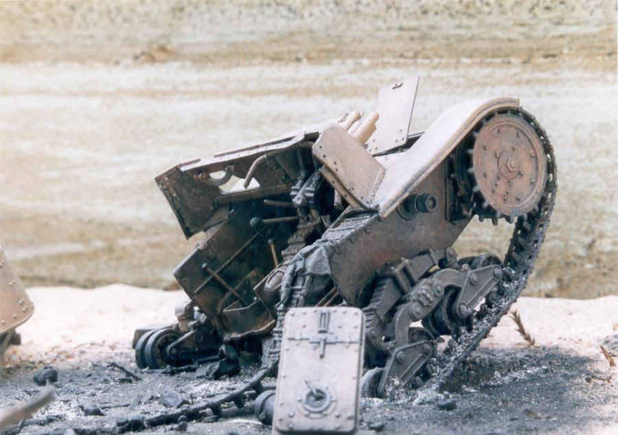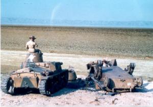 Australische Soldaten begutachten mit ihrem erbeuteten M11/39 einen abgeschossenen italienischen M13/40. Die Tatsache, daß sie in einer ähnlichen Blechbüchse sitzen, schlägt den "Aussis" gehörig auf den Magen und gibt ihnen zu denken, ob sie ihren M13/40 wohl noch lange nutzen werden... |