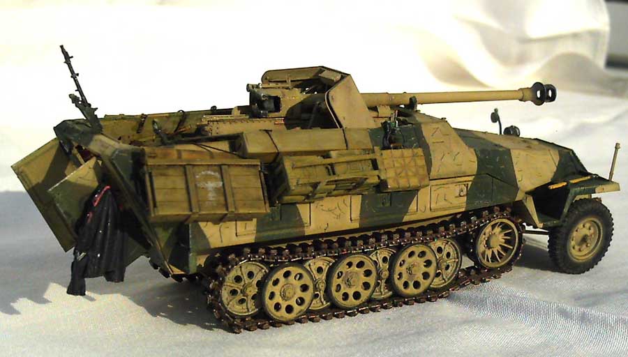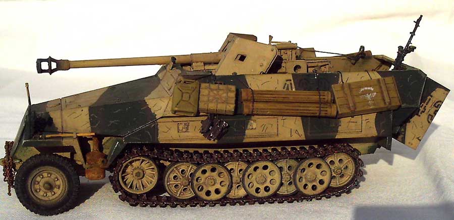 Es handelt sich um einen Pakwagen Sdkfz 251/22, der Bausatz war von AFV-Club. Ausser einer Friulkette ,die eigentlich nicht notwendig war, da Kette von Bausatz sehr gut ist, habe ich aus dem Kasten gebaut.