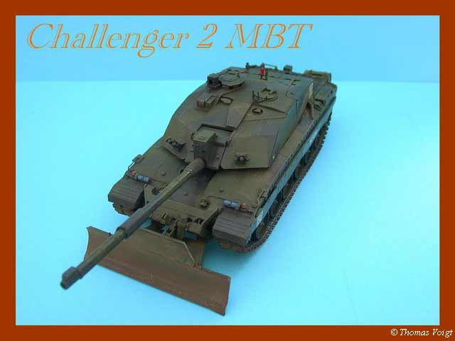Hierbei handelt es sich um den Challenger 2 MBT " KFOR in action at Kosovo " von Trumpeter sowie den ätzteilsatz von voyager. kurz was zum bau, der verlief ganz und ohne probleme, wobei mich der ätzsatz von voyager doch so manch graues haar gekostet hat, da der satz zuviele teile beinhaltet. alle teile hab ich nicht verbaut sonst wäre ich bis jetzt noch nicht fertig geworden :D. bemalt hab ich ihn mit tamiya farben außerdem hab ich hier das erste mal mit washing gearbeitet und ich finde für das erste mal sieht es ganz gut aus, also mir gefällt es so. leider hab ich mal wieder was versaut und zwar ist es dieses mal das dozer blade aber da es sich dabei bloß um pigmente handelt, werde ich das noch beheben