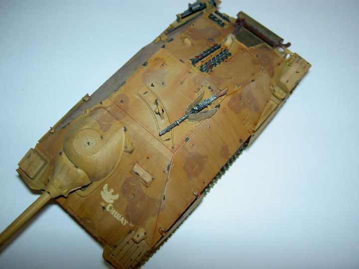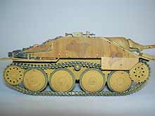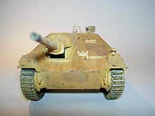 Dragons Hetzer gebaut von Daniel Schweiger Dies ist der Hetzer (early) von Dragon direkt aus der Schachtel gebaut als polnisches Beutefahrzeug "Chwat". Bemalt mit Acrylfarben von Lifecolor. Washing und Trockenmalen mit Ölfarben. Das Fahrwerk habe ich mit einer Mischung aus destillierten Wasser und Farbpulver (aus dem Künstlerbereich) eingestaubt. |