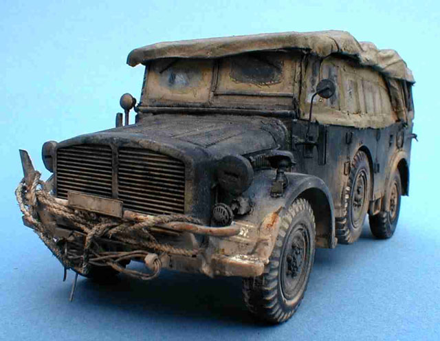 Hier haben wir zur Abwechslung mal ein wirklich berühmtes Modell - nämlich den Horch 4x4 des französischen Autors Jean-Philippe Uhring. Das Modell stammt aus dem neuen Heft der Reihe "Militar's Kits Hors No 4 - German & Allied Wheeled Vehicles" (Vorgestellt in "Ausgepackt"). Sinnigerweise hat Jean Phillipe genau dieses Modell auch in unserem Oktober Quiz gewonnen...