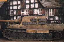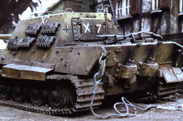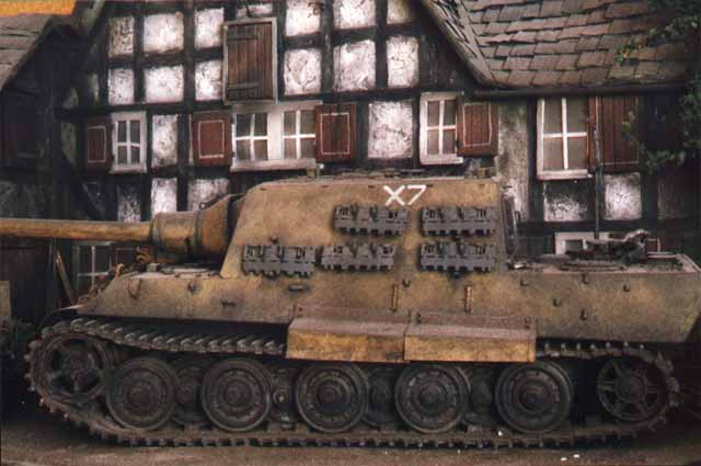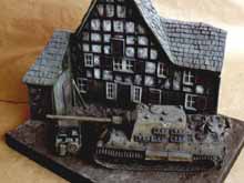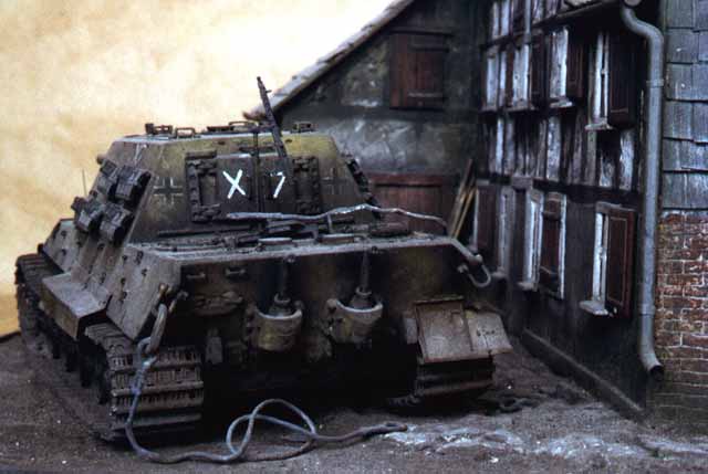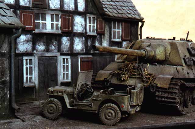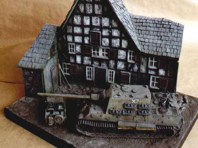 Ein Henschel Jagdtiger in Szene gesetzt, nach einem Original Bild eines Jagdtigers der 1.Kp Panzerjägerabteilung 512 in Obernetphen, gebaut von Marek Czepnik und Krzysztof Motecki. Der Jagdtiger ist von Revell, aus dem Kasten gebaut. Das Haus hat Krzysztof selbst gemacht.