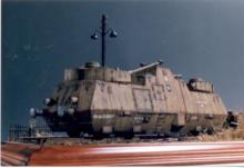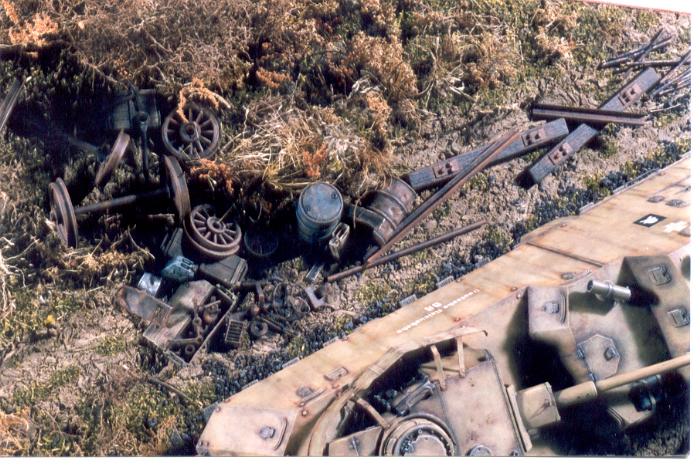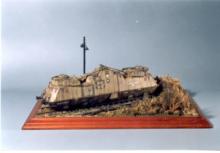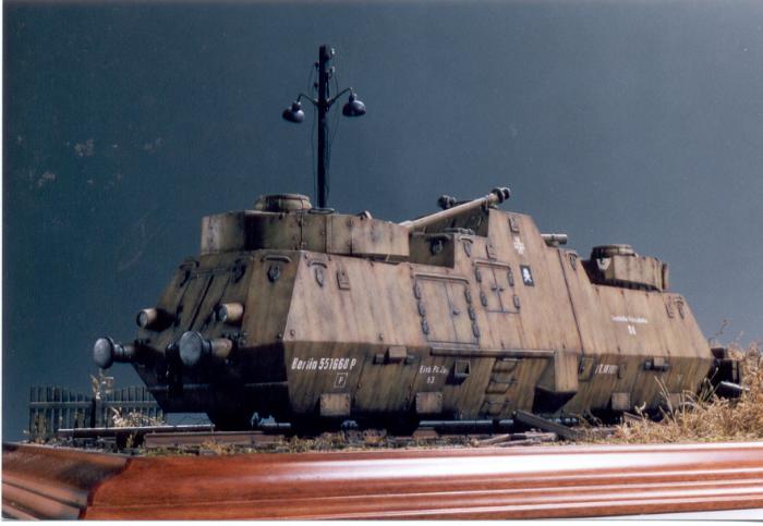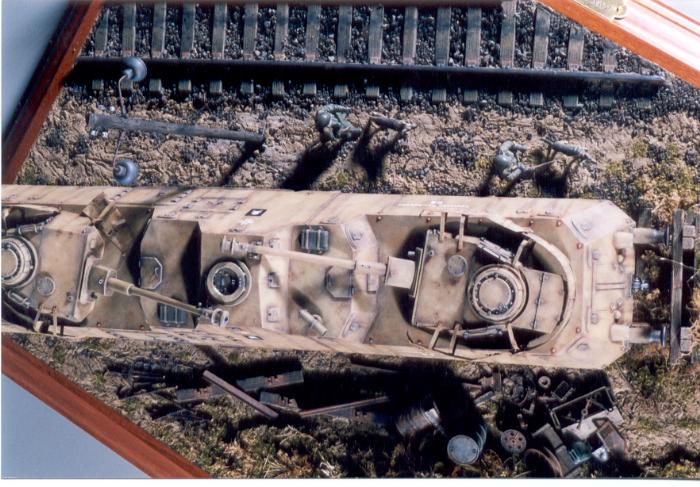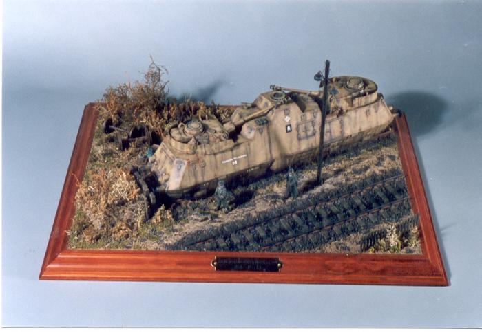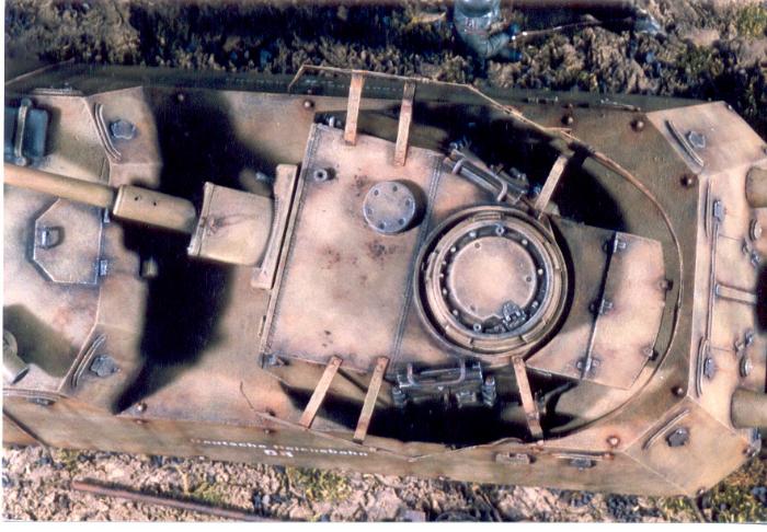Gezeigt wird ein Panzerjägertriebwagen mit zwei Panzer IV Türmen. |