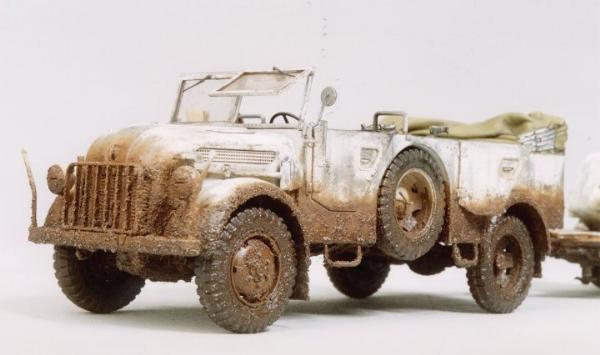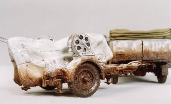 Der französische Top-Modellbauer und Co-Webmaster unserer französischen Partnerseite "Panzermaniacs" Patrick Lebecq hat diesen Steyr 1500 mit verhüllter 3,7cm Flak gebaut. Die Flak ist ein Resinkomplettmodell, der Steyr stammt von Tamiya. Man riecht gradezu den Schlamm am Fahrzeug!