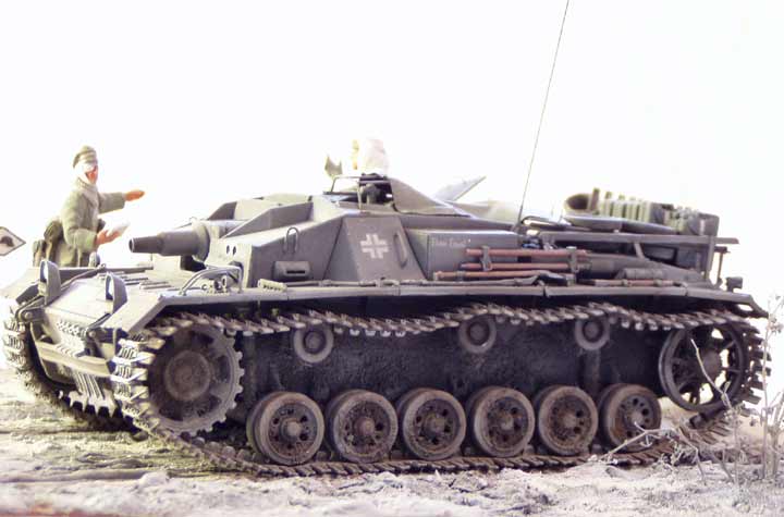 Das StuG III C/D ist von DRAGON, Ostketten von FRIUL, die Figuren sind von