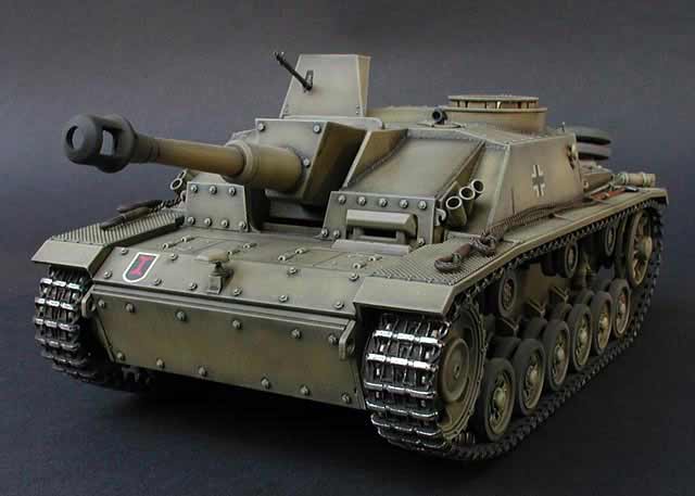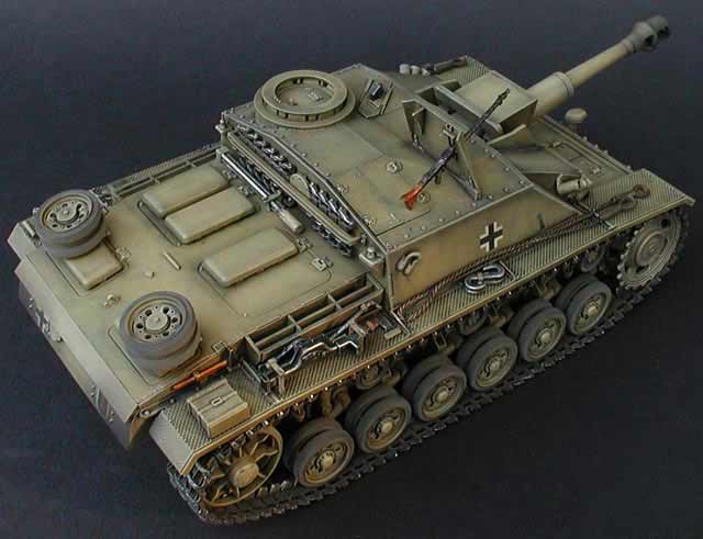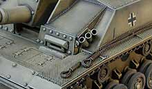verwendet: Tamiya, Vallejo, Wassermalfarben sowie Künstlerölfarben von Lukas. Die Abschleppseile wurden selbst mit gezwirbeltem Basteldraht (0,3mm) angefertigt. Insgesamt ein sehr überzeugender Tamiya-Bausatz, der durch extreme Passgenauigeit und Detailierung besticht. 3 zu bauende Versionen, zu denen auch eine seitlich gepanzerte Ausführung gehört, lassen dem ambitioniertem Modellbauer die Qual der Wahl. Bie diesem Modell habe ich mich für die kürzere, aber wuchtigere 10,5cm Kanone entschieden.