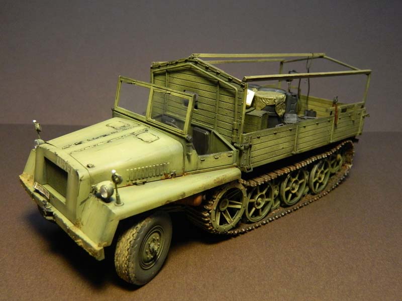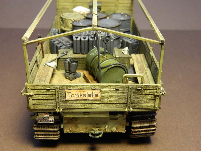 Erbauer: Michael Busch Hierbei handelt es sich um das Modell des Schweren Wehrmachtsschlepper SWS in 1:35 von Lion Roar / Great Wall Hobby. Tolles Modell das von seiner Passgenauigkeit, dem Zubehör und der Qualität, kein Vergleich mit dem Italerie Modell des SWS ist. Überraschend für mich war allerdings das trotz der Zusammenarbeit mit Lion Roar kaum Ätzteile dabei sind. Positiv finde ich das dem Bausatz ein Figurensatz von Mini Art beiliegt, die den SWS mit Fässern beladen. (Dieser ist auch separat von Mini Art erhältlich) Negativ finde ich allerdings, das bei dem Preis kein Motor im Bausatz enthalten ist! Diesen SWS habe ich als "Tankstelle" dargestellt.