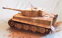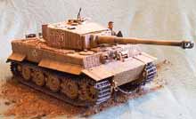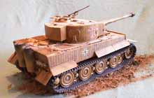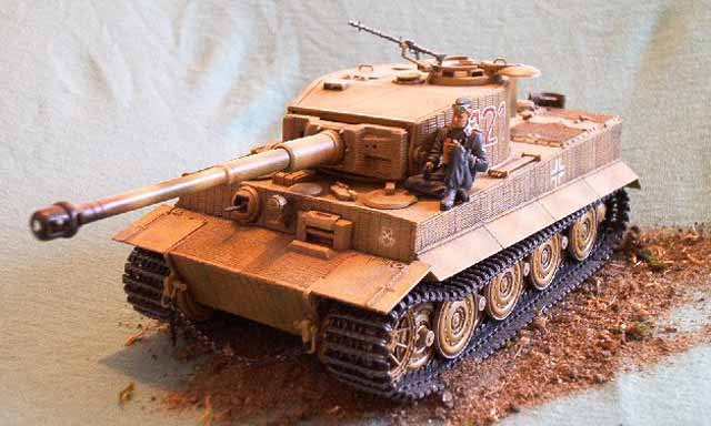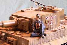 Unser Leser Martin Stiera zeigt uns hier seinen Tiger I mit Stahllaufrollen von Italeri. Die Figur ist von Verlinden. Die Balkenkreuze sowie das Divisionsabzeichen wurden mit Schablonen aufgespritzt,die Turmnummern wurden handgemalt.