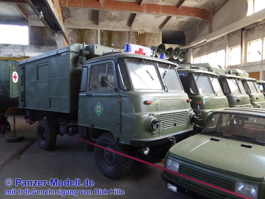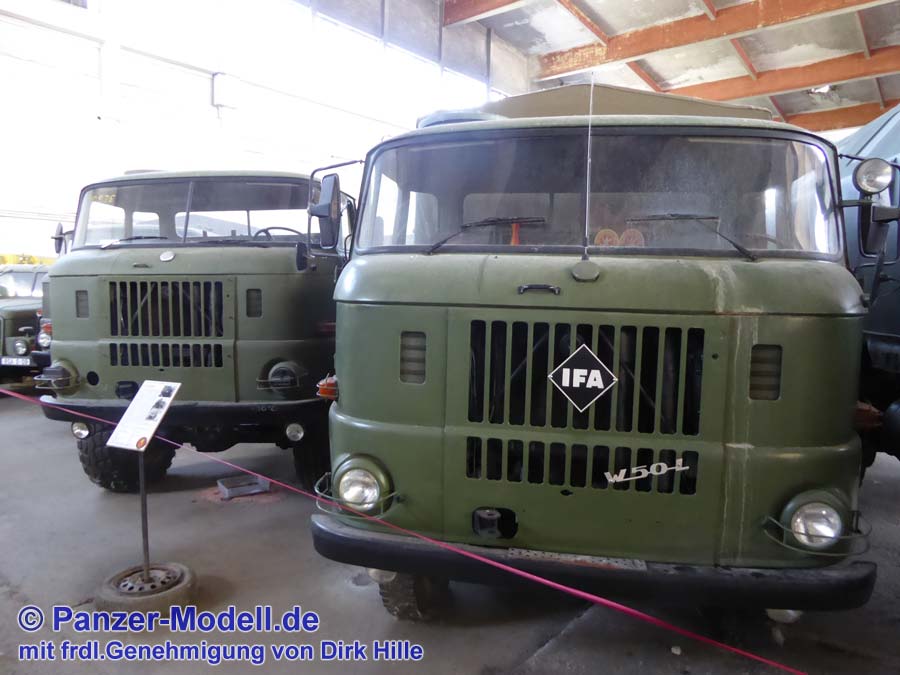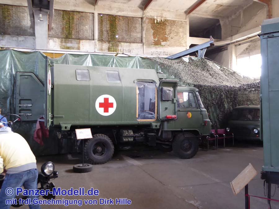 Diesen Sommer ging es mit der Familie an die Ostsee. Neben Sonne Strand und Meer wurde ein „Schlechtwettertag“ für einen Ausflug in dieses Museum genutzt. Schon oft davon gehört und doch irgendwie immer zu weit weg von zu Hause klappte es nun endlich. Am Rande des Nationalparks Vorpommersche Bodenlandschaft gelegen, befindet sich das Ausstellungsgelände direkt am Wasser des Saaler Bodden auf einem ehemaligen Kasernengelände. Im Zentrum des Geländes befindet sich eine angelegte Geländebahn, wo Besucher diverse Fahrzeuge (meist Lkw) gegen Entgelt selbst ausprobieren können. In drei Hallen (Flugzeughangars bzw. Panzerhallen) wurden diverse Geräte, Fahrzeuge und weitere technische Ausstellungsstücke zusammengetragen und zeigen die technische Geschichte von früher, gestern und heute in den ehemaligen Ostblockländern . Die Sammlung beinhaltet ca. fast 750 Fahr-, Schwimm- und Kettenfahrzeuge in verschiedenen Erhaltungszuständen, die auch teilweise vorgeführt werden können. Die Zufahrt und das Erscheinungsbild des gesamten Areals sind eher als rustikal zu bezeichnen. Alle Hallen sind vom Parkplatz aus gut fußläufig zu erreichen. Im Großen und Ganzen ist dieses „Museum“ eher eine Fahrzeugsammlung, an deren Unterbringung der Zahn der Zeit doch schon stark nagt. Dennoch sind auch sehr viele schöne Exponate dabei, die den Weg hierher durchaus lohnen. Spannend ist zudem das stetige Arbeiten an Fahrzeugen durch Mitarbeiter des Fördervereins während der ganz normalen Öffnungszeiten. So kann es durchaus, wie bei unserem Besuch, vorkommen dass einem ein Schützenpanzer MTLB über den Weg „fährt“. Wer einen Besuch plant, sollte sich im Vorfeld über die diversen Fahrzeugtreffen informieren. Denn dann ist auf dem Gelände des Museums zusätzlich noch vieles mehr an fahrbereiten Ostblockgerätschaften zu finden und zu bestaunen. Adresse: Technik Museum Pütnitz Flugplatzallee Tel. +49 170 22 35 850 Email: technikverein-pütnitz@live.de http://www.technikmuseum-puetnitz.de/
