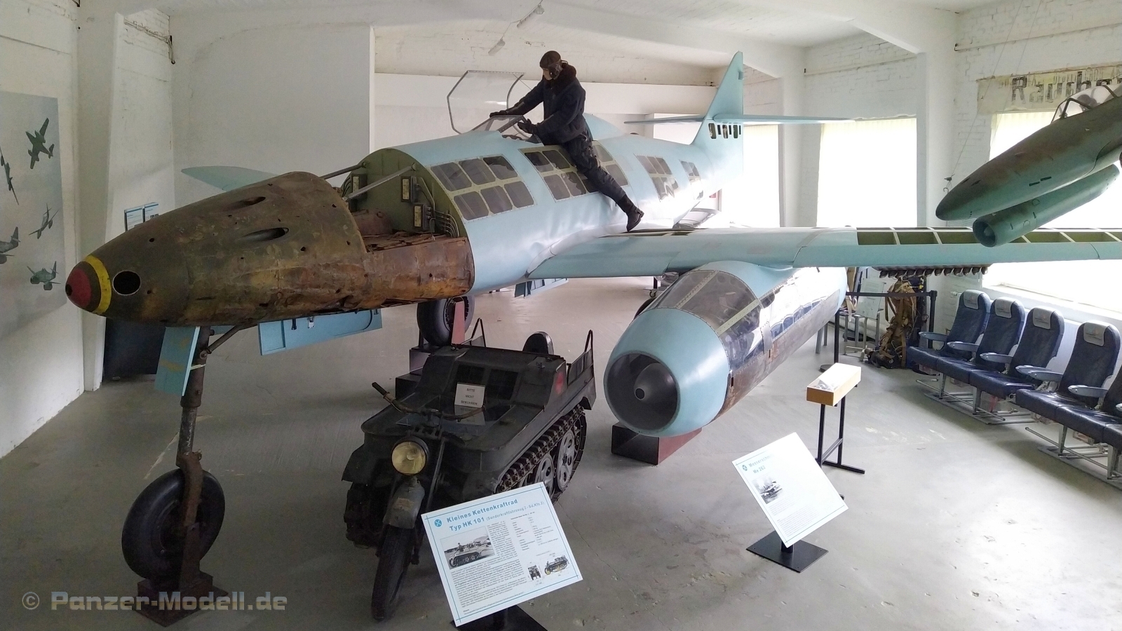 Ein Familienurlaub über Ostern führte uns ins südliche Mecklenburg-Vorpommern. An einem Tag durfte sich der Vati eine Sehenswürdigkeit aussuchen und da kam mir das Luftfahrttechnische Museum in Rechlin in den Sinn. Schon viel davon gehört und gelesen wollte ich mir doch selber mal ein Bild von diesem Museum machen. Der Rest der Familie konnte überzeugt werden an einem Vormittag einen Ausflug dorthin zu unternehmen. Das Museum befindet sich im Örtchen Rechlin an der Müritz, also an der landschaftlich schönen mecklenburgischen Seenplatte. Ringsherum gibt es also bei gutem Wetter weitere Ausflugsmöglichkeiten ans Wasser. Auf dem Areal der ehemaligen Erprobungsstelle der Luftwaffe des III.Reiches - Gruppe Nord ist das Museum größtenteils im historischen Gebäudeensemble untergebracht. Nach 1945 wurden die Liegenschaften der Erprobungsstelle von den sowjetischen Streitkräften in Deutschland genutzt und nach deren Abzug im März 1993 freigegeben. Seit 1998 ist das Museum für Besucher zugänglich. Getragen wird das Museum durch zwei ehrenamtliche und gemeinnützige Vereine: - Förderverein Luftfahrttechnisches Museum Rechlin e.V. - Luftfahrttechnisches Museum Rechlin e.V. In der Ausstellung wird die Entwicklungsgeschichte der deutschen Luftwaffe bis 1945, die militärische Nachnutzung des Standortes Rechlin aber auch die Entwicklung Rechlin nach 1945 mit vielen aussagekräftigen Exponaten und Hintergrundinformatioen beleuchtet und dargestellt. Dazu ist die Ausstellung in folgende fünf räumlich geteilte Bereiche aufgeteilt: