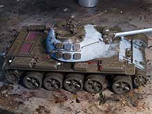 One of the most difficult subjects in a T55...balkans war!!! But you treated it very well and the result is convencing. Nice camo, slogans and effects. The tracks and wheels have the main problem....because seems more a rusty and abandonated tank than a new one. Study real photos of the T55 tracks and you will understand it. The enigma T55 in this contest is a good example. But is something that with your skill can fix easily. Nice work!!!