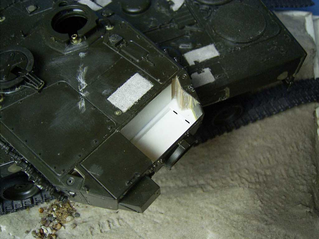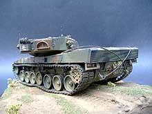 Good basic detailing. Vey nice to see roadwheels and tracks confroming to terrain. Camo and colours very convincing, but dust very uniform which makes the final result a bit boring. A big vehicle like that needs some more variety.