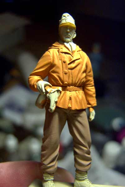 Als Grundierung für dieses Tarnmuster nehmen wir 929 Light Brown, auf das wir einige Flecken aus 873 US Field Drab aufmalen