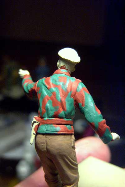 Als die Deutsche Wehrmacht nach der Kapitulation Italiens dieses im Spätsommer 43 besetzte, übernahm sie auch die Bestände an italienischen Tarnuniformen und Stoffbeständen. Dieser Tarnstoff wurde meist von den Kompanieschneidern verschiedener Einheiten zu Uniformen nach deutschen Schnittmustern verarbeitet. Für die Grundfarbe dieser Uniform gibt es zwei Varianten. Zum einen 818 Red Leather, wenn die Uniform mehr rot sein soll, oder 891 Intermediate Green für eine grün basierte Uniform. Die helleren Flecken sind aus 976 Buff.